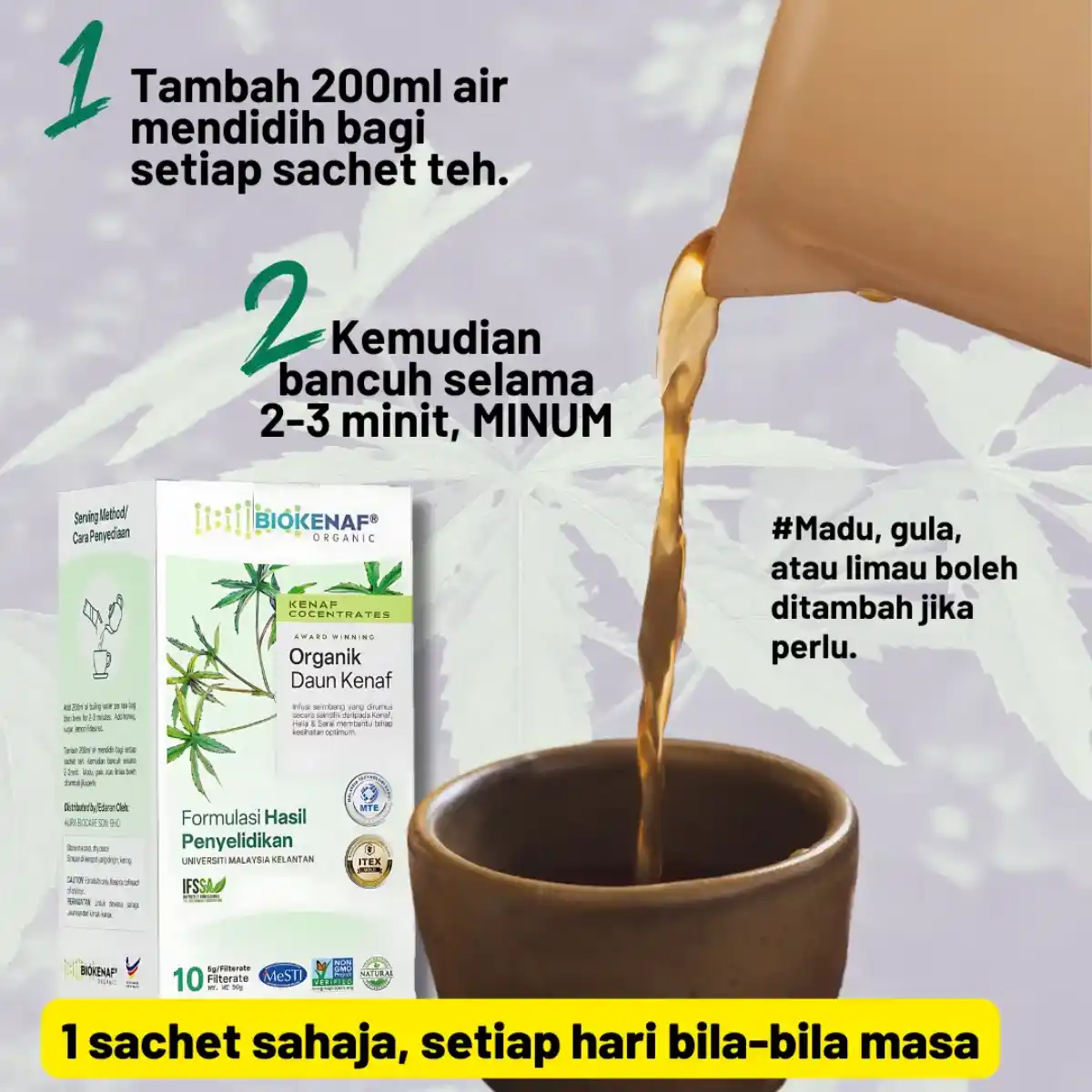 Satu uncang boleh buat 3 cawan air Biokenaf®