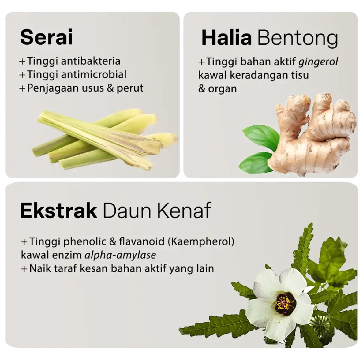 Inovasi dari kajian sains. Diformulasi oleh Ts. Dr. Maryana bt Mohamad Nor serta pasukannya di Universiti Malaysia Kelantan, TERBUKTI BERKESAN selepas dikaji selama 4 tahun.